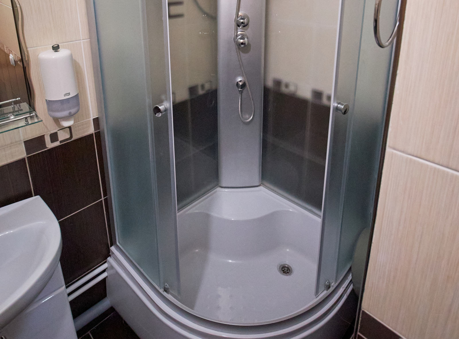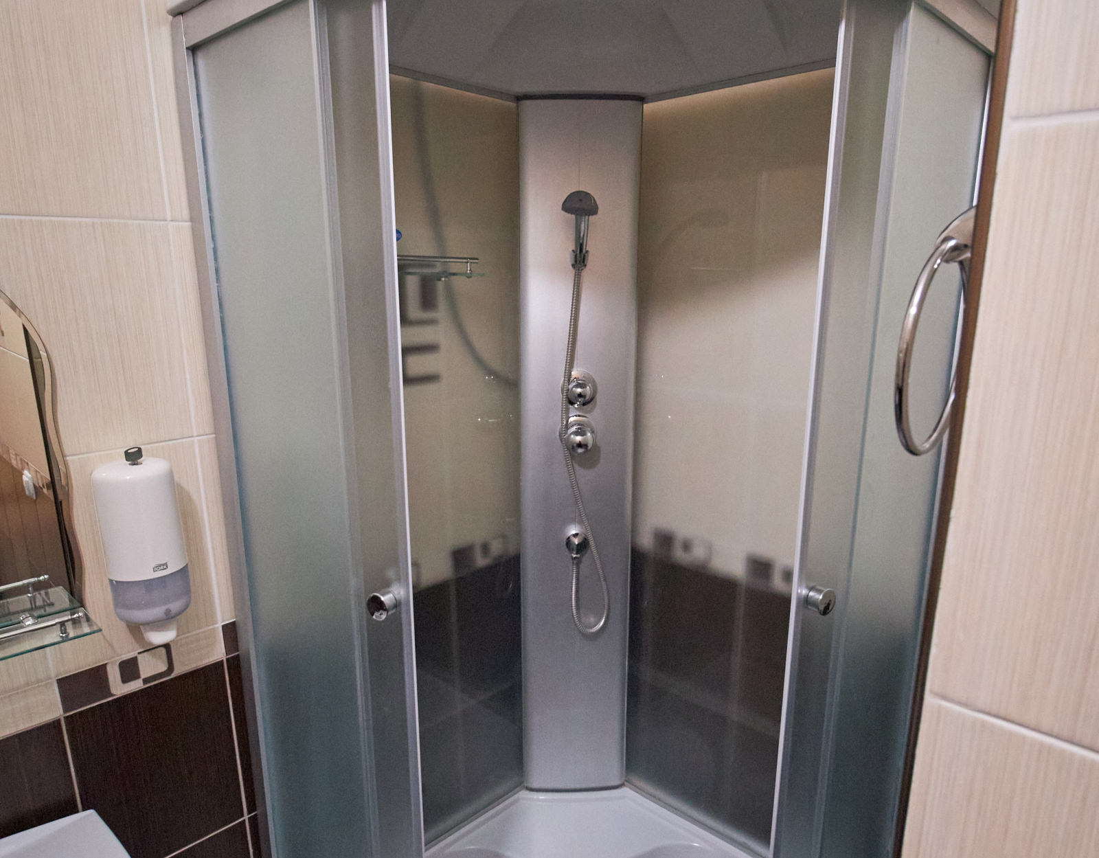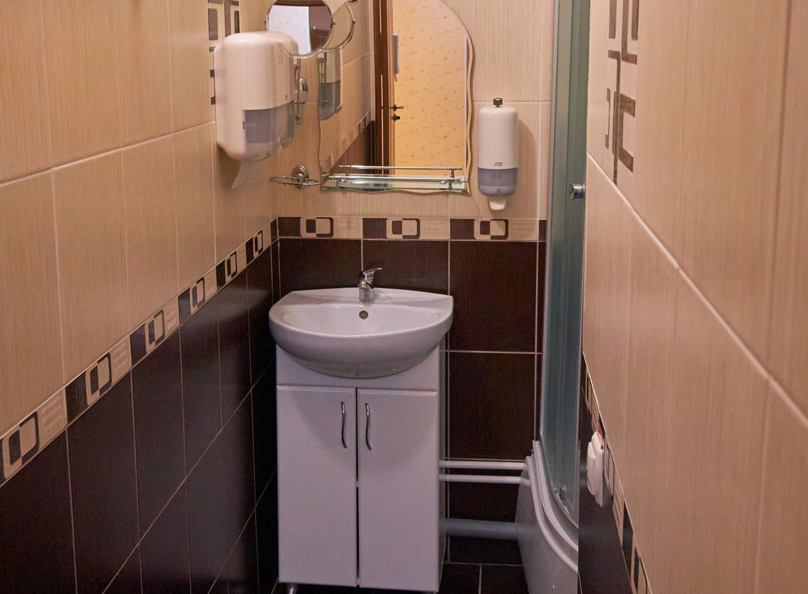 Площадь номера - 29 кв.м. 5 осн. мест. 2 доп. места. Мебель: вешалка, кровати односпальные, прикроватные тумбочки, столик журнальный, стулья, тумба под телевизор, шкаф-купе. Оборудование: кондиционер, мини-холодильник, телевизор ЖК, чайный набор посуды. Санузел на блок. Сервис: смена полотенец, смена постельного белья, уборка номера.