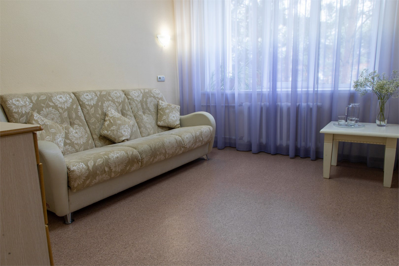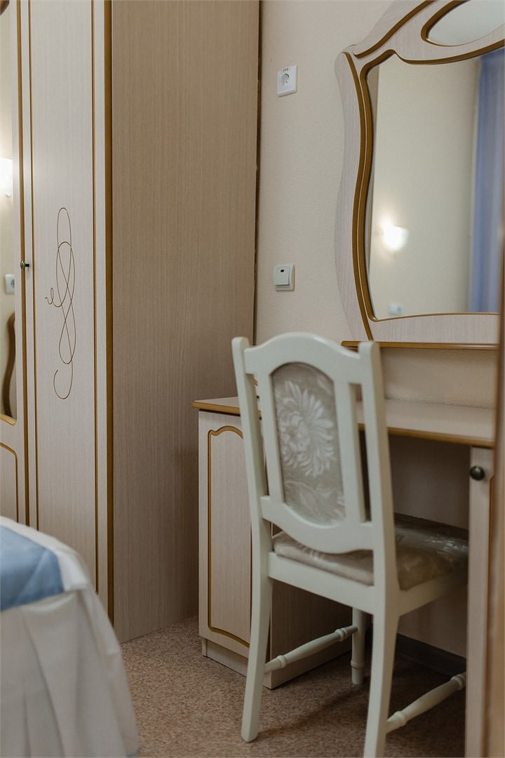 Площадь номера - 28 кв.м. 2 осн. места. 2 доп. места. Мебель: вешалка, зеркало, кровати односпальные, прикроватные тумбочки, столик журнальный, стулья, тумба под телевизор, шкаф-купе. Мини-кухня. Оборудование: кондиционер, микроволновая печь, мини-холодильник, сейф, телевизор ЖК, чайный набор посуды, электрочайник. Санузел: с душевой кабиной, тапочки, туалетные принадлежности, фен, халат. Сервис: Wi-Fi бесплатно, смена полотенец, смена постельного белья, уборка номера.
